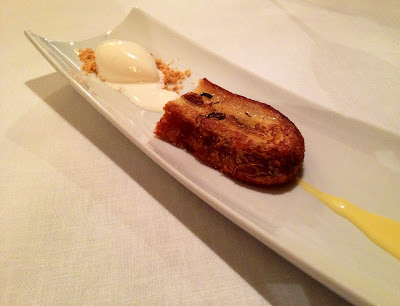 Acompañados por unas patatitas laminadas y el sabor de la morcilla, resultó una combinación de creatividad, texturas, aromas y sabores que nunca olvidaré.