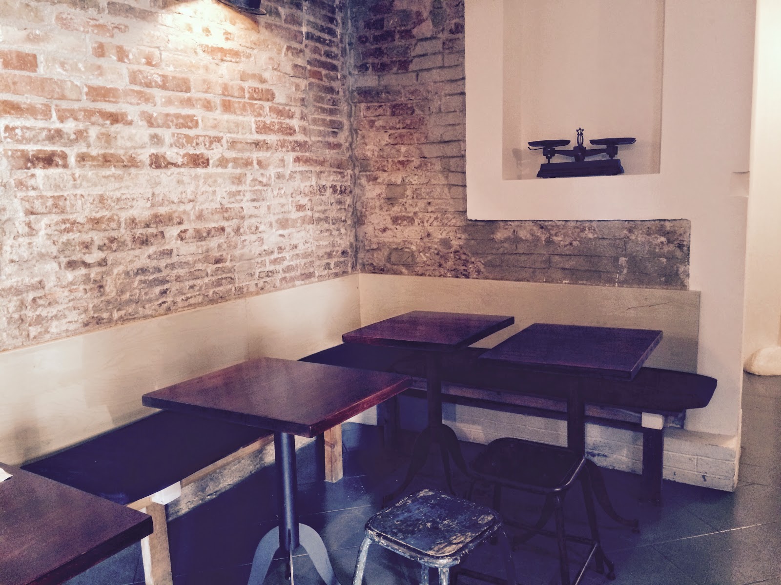 Decorativamente hablando este rincón esquinero de Parlament tiene mucho carisma, paredes de obra vista, un pequeño espacio para sentarse, acero, pizarra con las novedades (que también podéis consultar en sus redes sociales a diario) y lo mejor, un obrador a la vista donde poder contemplar la artesanía del maestro en vivo y en directo.